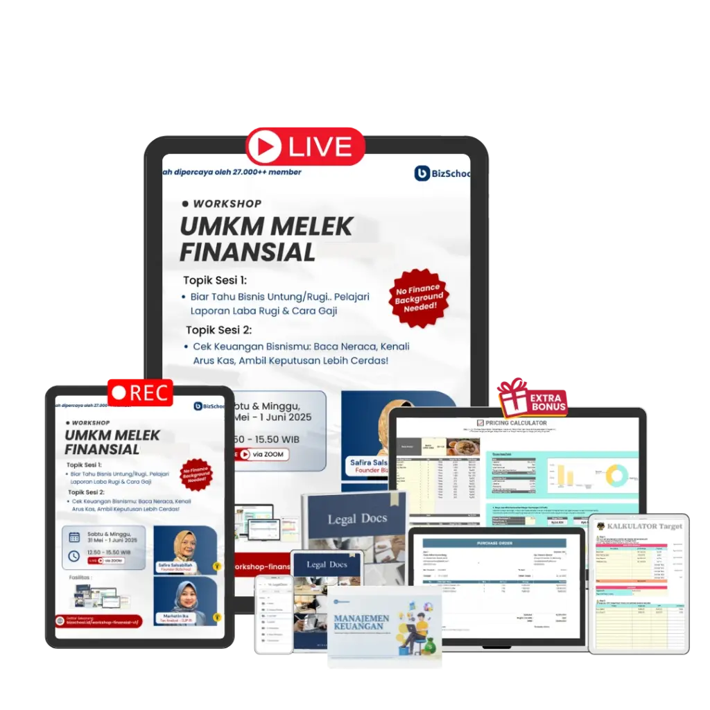 Home Course Tools Ai Tools Login Member Home Course Tools Ai Tools Login Member Course & Workshop Ingin bisnis makin rapi dan full cuan? Saatnya jadi owner yang cerdas dengan pelajari beragam kelas terbaik untuk pebisnis disini! WorkshopJadwal PelaksanaanLink Pendaftaran UMKM Melek Pajak30 Agustus 2025 Tutup UMKM Melek Finansial Batch 727-28 September 2025Tutup UMKM Melek Finansial Batch 825-26 Oktober 2025Tutup UMKM Melek Finansial Batch 929-30 November 2025Info Lanjut UMKM Melek Finansial Batch 9 Workshop 2 hari bikin kamu paham laporan keuangan. Mau Lihat Produknya Business Finance Kit Gak perlu background finance, Kamu bisa kelola keuangan bisnismu sendiri! Mau Lihat Produknya